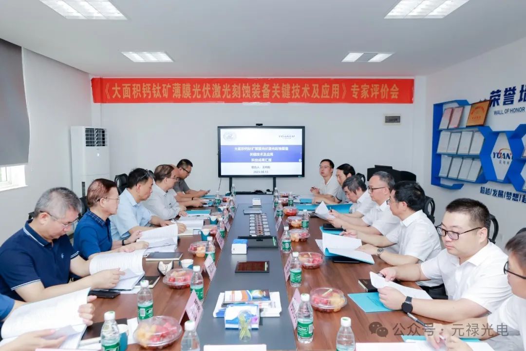 為積極響應鈣鈦礦太陽能電池規?;苽涞漠a業需求,武漢元祿光電技術有限公司(以下簡稱“元祿光電”)于2024年8月13日在武漢召開《1200mm×2400mm鈣鈦礦薄膜光伏激光刻蝕裝備關鍵技術及應用》科技成果評價會。該項技術聚焦大面積鈣鈦礦太陽能激光成套裝備的研究,拓展了激光光刻局域成型方法,成功研發出世界首臺套“20振鏡頭大幅面鈣鈦礦高速激光刻蝕成套設備”。